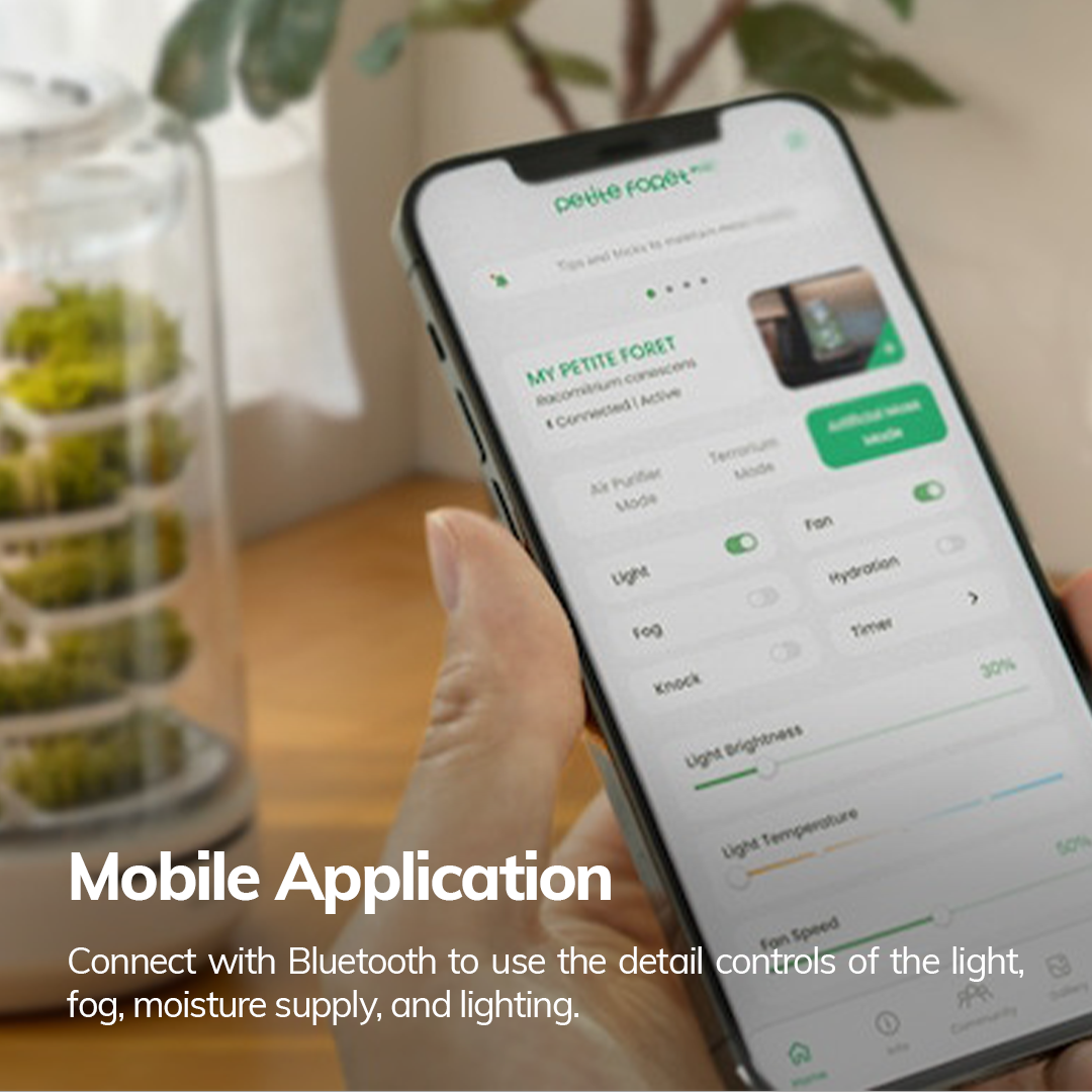 I had been thinking of buying it for a while, and when I heard about the discount, I decided to get it as a gift for my wife. First of all, the craftsmanship is impressive. The size is just right, and the combination of moss and mist is very calming. I'm also looking forward to its air purification abilities. It works well with the app too. I set it up in my office, and people find it fascinating. All in all, I’m very satisfied.